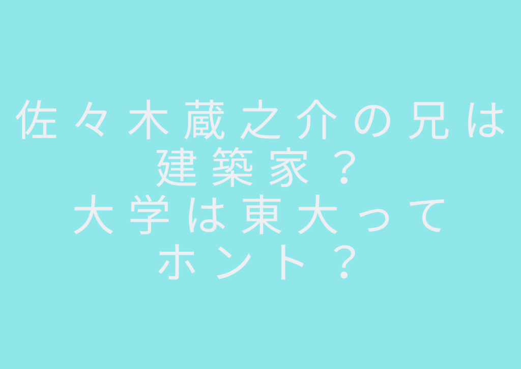 俳優として幅広い作品に出演し、落ち着いた存在感で人気を集める俳優の佐々木蔵之介さん♪ 実家が京都の老舗酒蔵「佐々木酒造」であることはよく知られているのではないでしょうか? そして佐々木蔵之介さんの兄は「東大卒の建築家らしい!」という噂を耳に... -