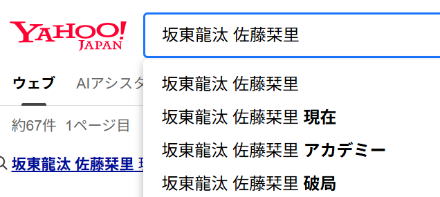 Yahoo!で坂東龍汰さんと佐藤栞里さんについて検索してみると「破局」と書いてあり、本当なのか気になり調べてみようと思いました。