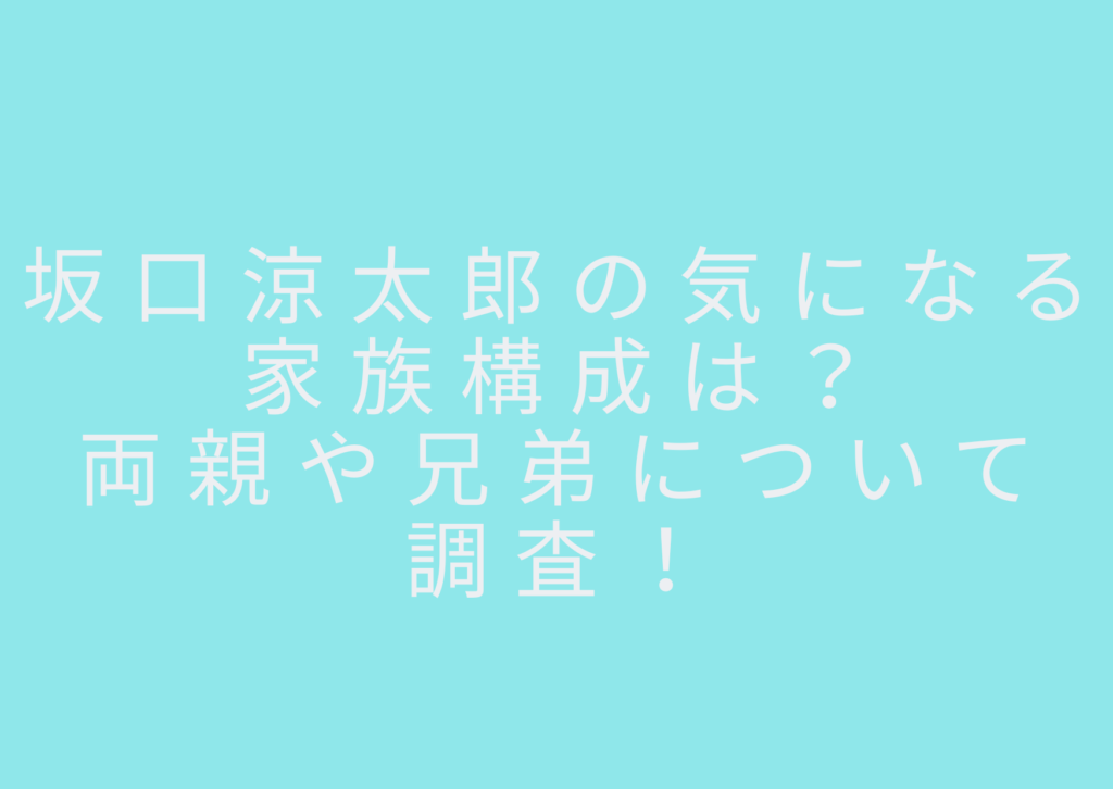 坂口涼太郎の気になる家族構成は?両親や兄弟について調査!